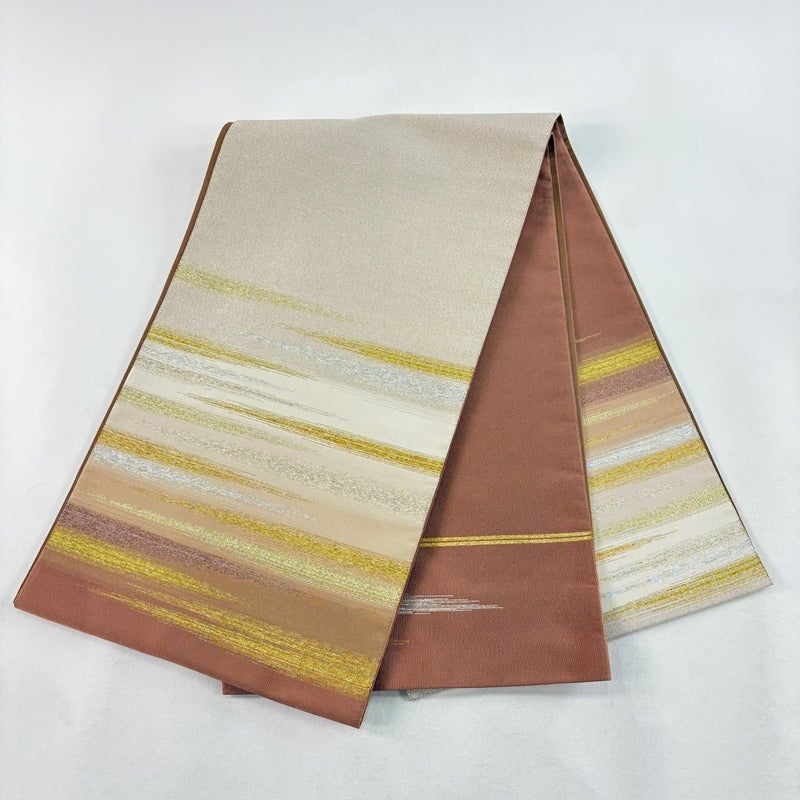 【着物ランク】秀品 【素材】正絹 【帯丈】約450cm 【帯幅】約31cm 【帯仕立て】仕立て上がり 【状態ランク】ランクA 【帯着用シーン】セミフォーマル(色無地・付下げ)