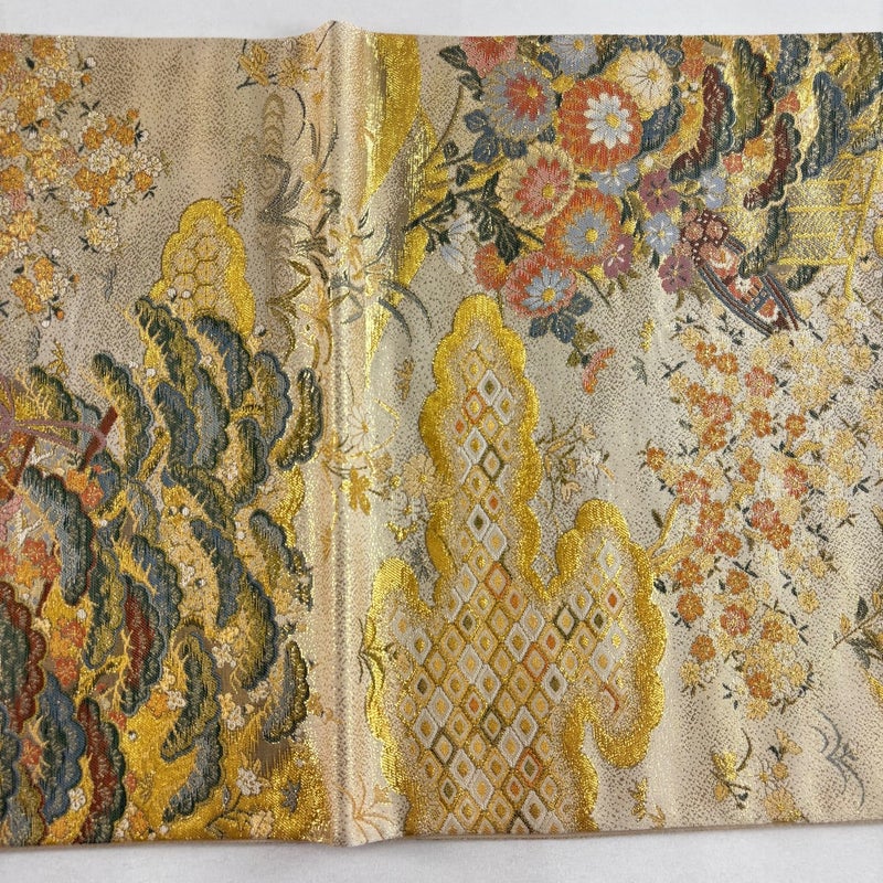 【着物ランク】秀品 【素材】正絹 【帯丈】約434cm 【帯幅】約31cm 【帯仕立て】仕立て上がり 【状態ランク】ランクA 【帯着用シーン】フォーマル(留袖・振袖・訪問着)