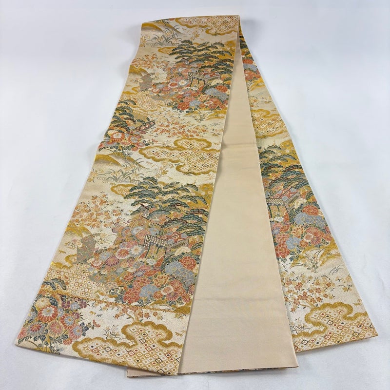 【袋帯】 白系 ベージュ 秀品 A 帯丈426cm~435cm 7990-9980 美品 二万以下