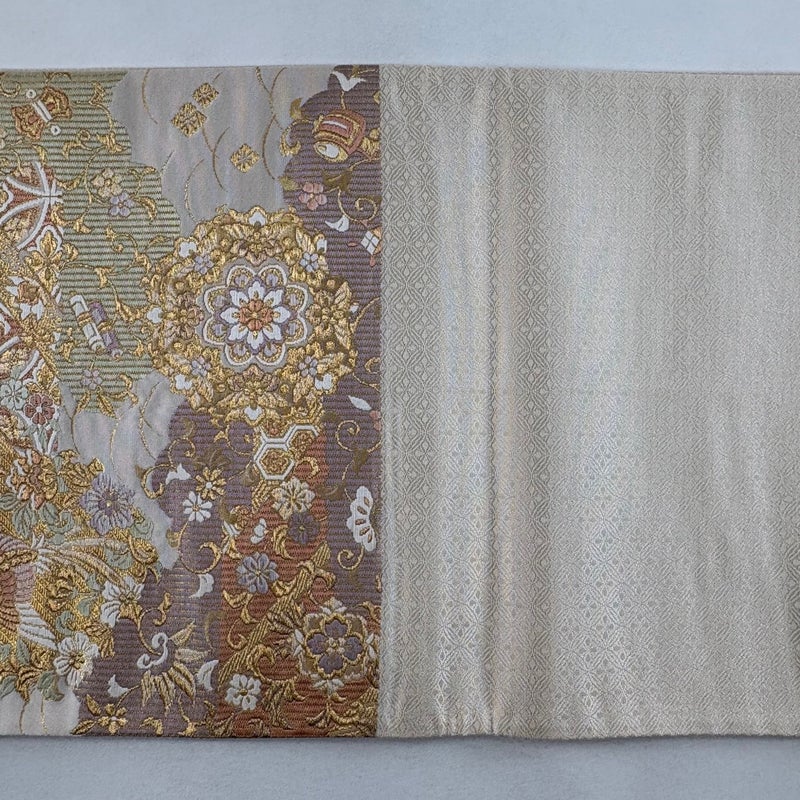 【袋帯】 白系 ベージュ 秀品 A 帯丈426cm~435cm 7990-9980 美品 二万以下