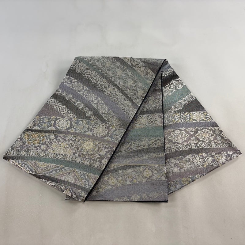 【袋帯】 灰色系 灰紫 名品 A 帯丈436cm以上 9990-29990 美品 二万以下