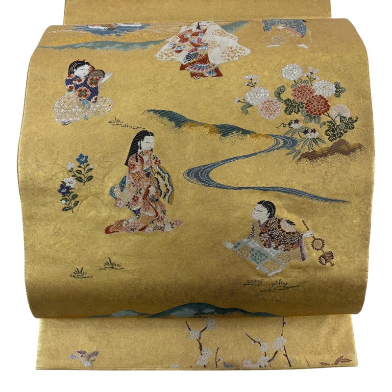 昭和23年に創業した西陣の老舗、「長嶋成織物」の作品です。 おめでたい席に相応しい意匠の袋帯でございます。 格式高いお席にもお使いいただけますので、お見逃しのないようお願いいたします。 締め跡がございます。 締め跡沿いに若干の箔の傷みがございます。 リユース品としては目立った染み傷なく、状態の良いお品でございます。 ※なお、厳しく商品の状態確認を行っておりますが、記載の汚れ以外にも見落とし箇所がある可能性がある旨ご了承いただけますと幸いです。 沢山の商品の中からご覧いただき誠にありがとうございます。 【PR2】