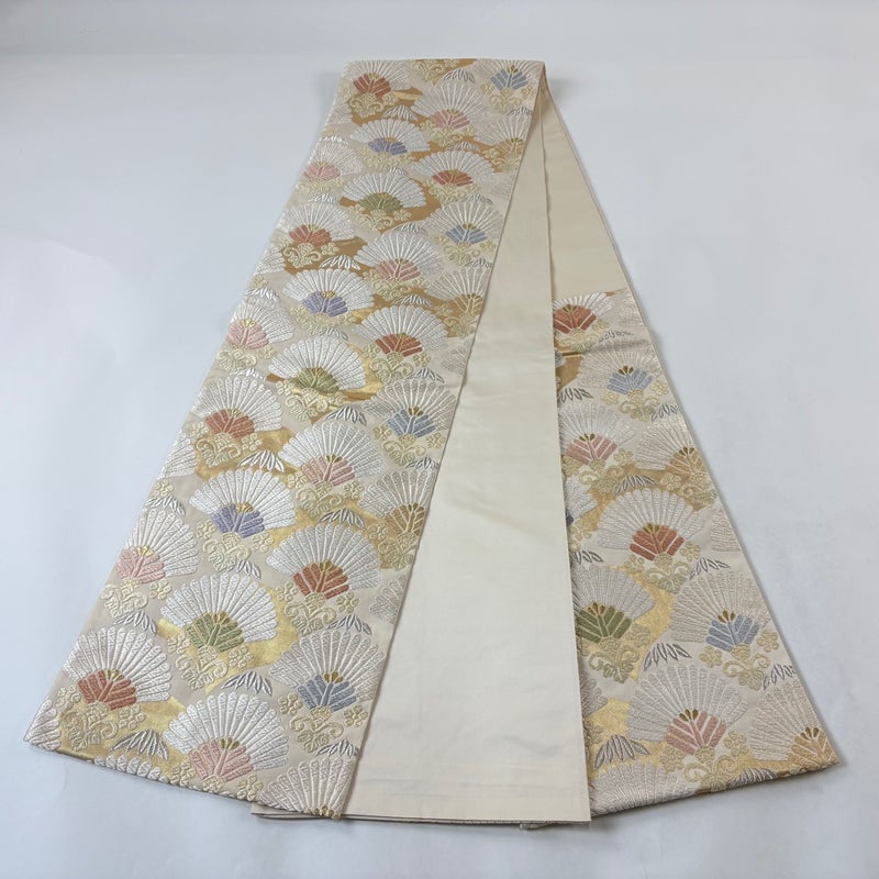 【袋帯】 白系 クリーム 名品 A 帯丈436cm以上 9990-29990 美品 二万以下