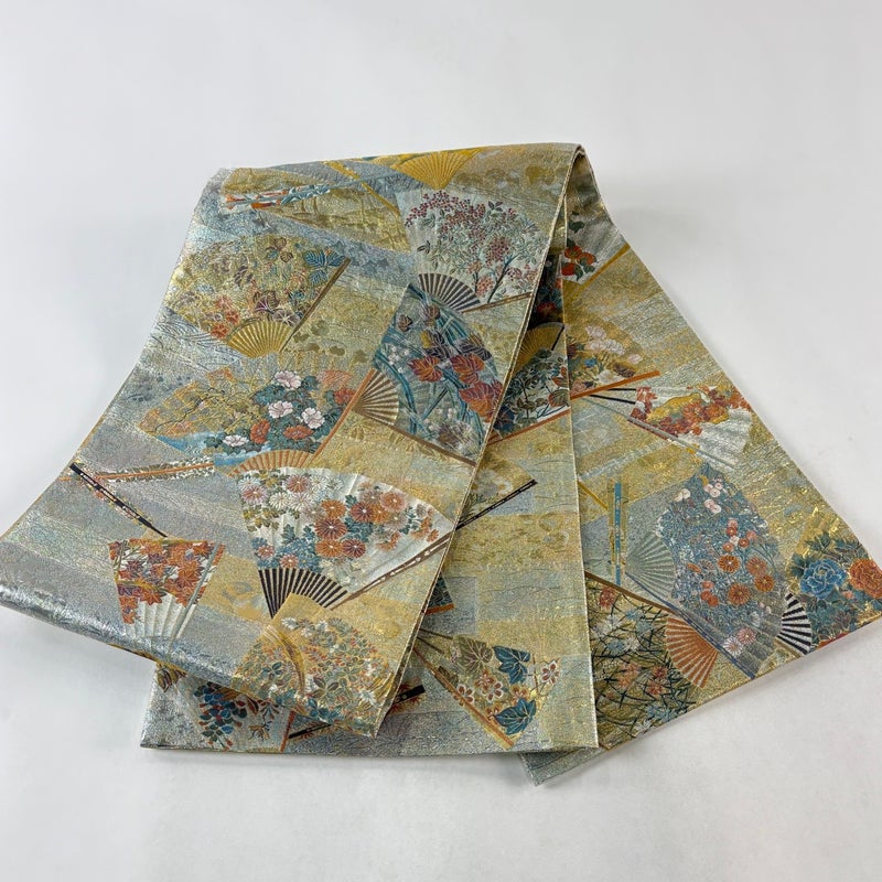 【袋帯】 灰色系 灰緑 名品 A 帯丈436cm以上 9990-29990 美品 二万以下