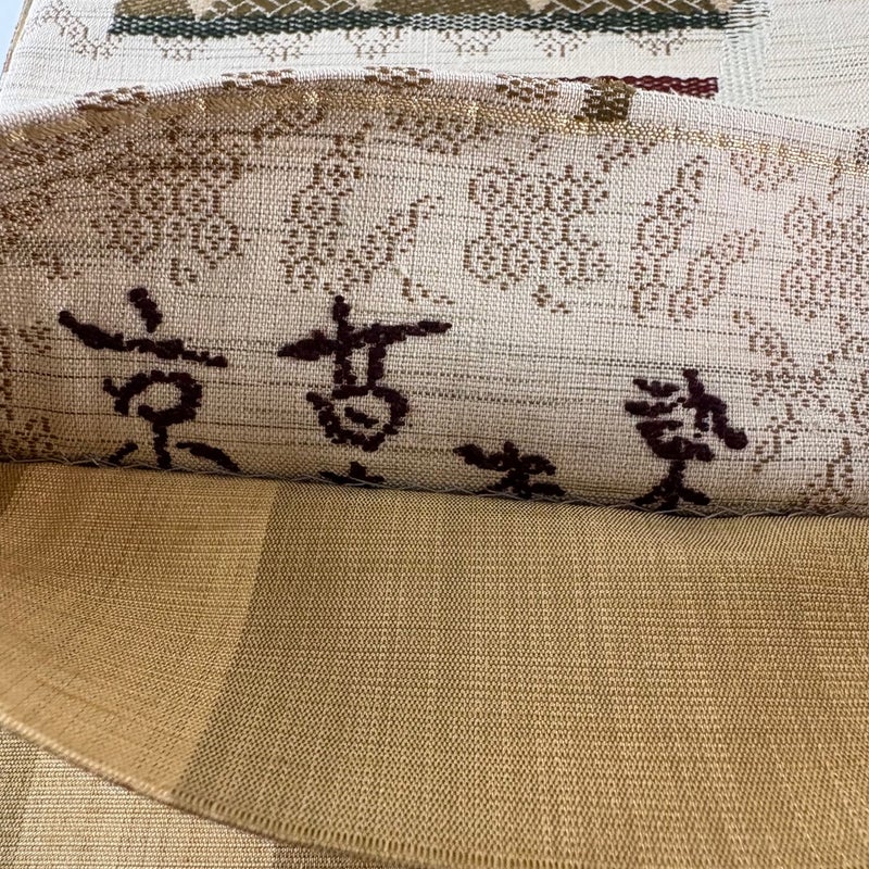 普段使いでお使いいただける袋帯でございます。 カジュアルな装いに合わせてお使いください。 締め跡がございます。 手先付近に糸ほつれがございます。 表地所々に小さな糸ゆるみがございます。 リユース品としては目立った染み傷なく、状態の良いお品でございます。 ※なお、厳しく商品の状態確認を行っておりますが、記載の汚れ以外にも見落とし箇所がある可能性がある旨ご了承いただけますと幸いです。 沢山の商品の中からご覧いただき誠にありがとうございます。