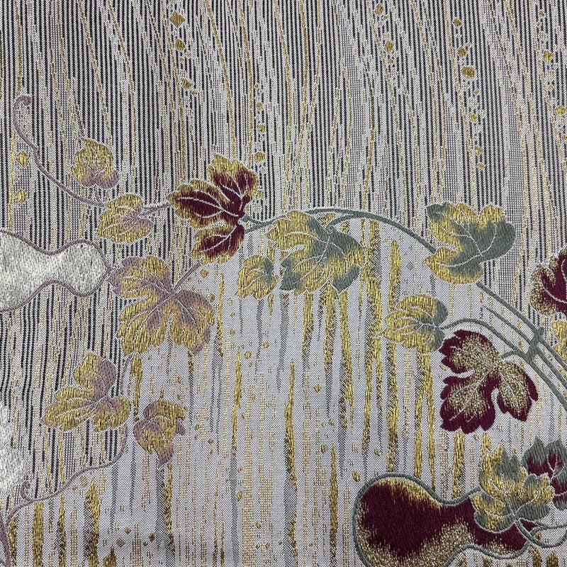 セミフォーマルでお使いいただける袋帯でございます。 見る人に重たい印象を感じさせない女性ならではの、気品豊かな一品です。 締め跡がございます。 お太鼓垂先間に生地のヨレ、表地所々に薄いシミ、中無地所々にシワ、中無地所々にほこりの付着がございます。 裏地所々に薄いシミがございます。 リユース品としては良い状態で、まだまだご活用頂けると思われます。 ※なお、厳しく商品の状態確認を行っておりますが、記載の汚れ以外にも見落とし箇所がある可能性がある旨ご了承いただけますと幸いです。 沢山の商品の中からご覧いただき誠にありがとうございます。 【PR2】