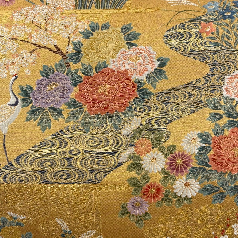 昭和23年に創業した西陣の老舗、「長嶋成織物」の作品です。 おめでたい席に相応しい意匠の袋帯でございます。 格式高いお席にもお使いいただけますので、お見逃しのないようお願いいたします。 リユース品としては目立った染み傷なく、状態の良いお品でございます。 ※なお、厳しく商品の状態確認を行っておりますが、記載の汚れ以外にも見落とし箇所がある可能性がある旨ご了承いただけますと幸いです。 沢山の商品の中からご覧いただき誠にありがとうございます。 【PR2】