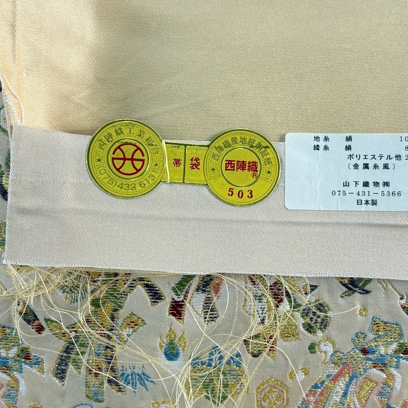 【着物ランク】名品 【素材】正絹、化繊 【帯丈】約440cm 【帯幅】約30.5cm 【帯仕立て】仕立て上がり 【状態ランク】ランクA 【帯着用シーン】フォーマル(留袖・振袖・訪問着)