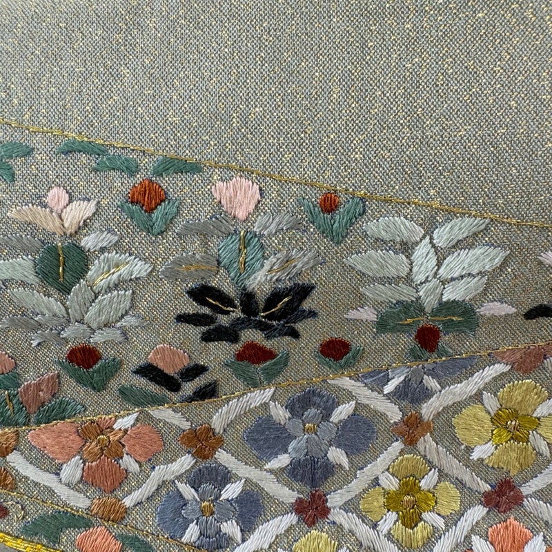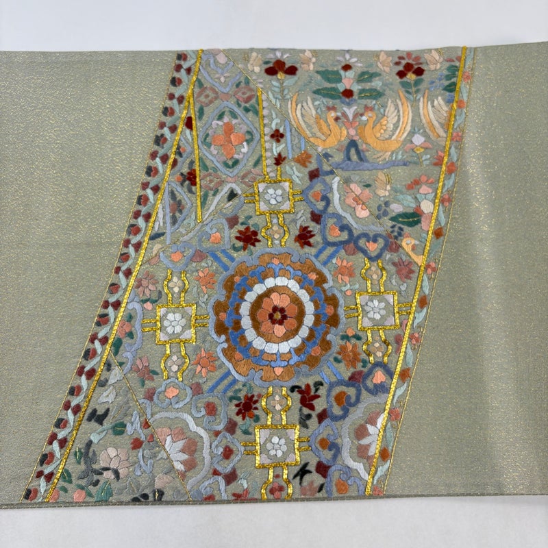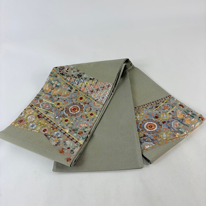 【袋帯】 灰色系 灰緑 名品 A 帯丈436cm以上 9990-29990 美品 二万以下