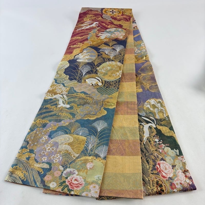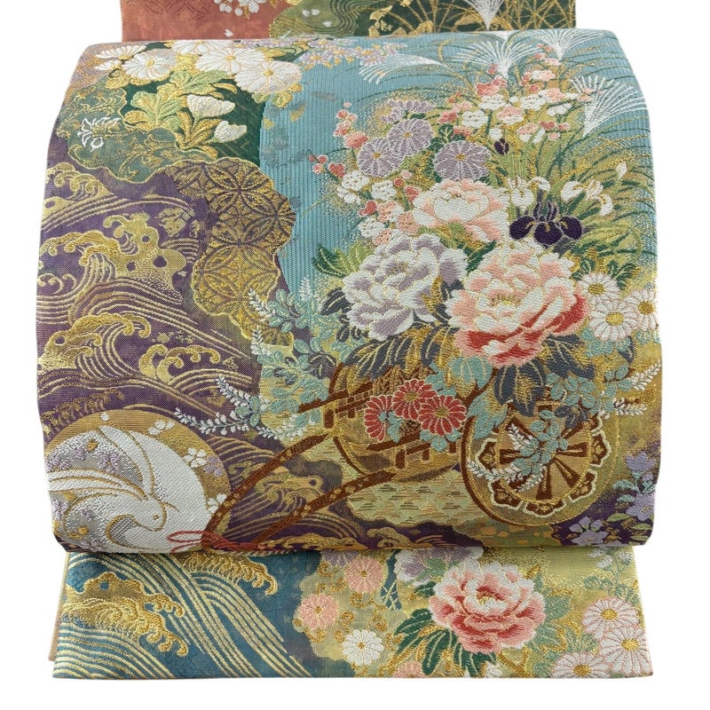 おめでたい席に相応しい意匠の袋帯でございます。 格式高いお席にもお使いいただけますので、お見逃しのないようお願いいたします。 締め跡がございます。 リユース品としては目立った染み傷なく、状態の良いお品でございます。 ※なお、厳しく商品の状態確認を行っておりますが、記載の汚れ以外にも見落とし箇所がある可能性がある旨ご了承いただけますと幸いです。 沢山の商品の中からご覧いただき誠にありがとうございます。 【PR2】