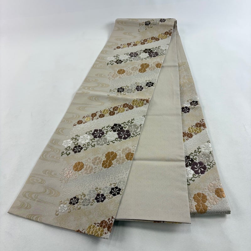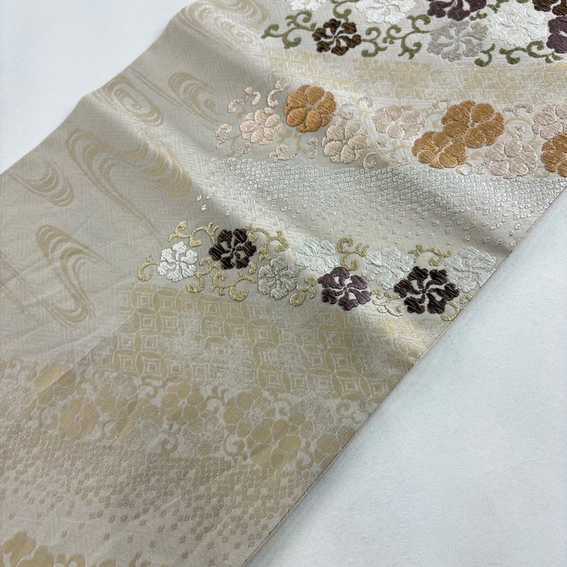 【袋帯】 白系 ベージュ 名品 A 帯丈436cm以上 9990-29990 美品 二万以下