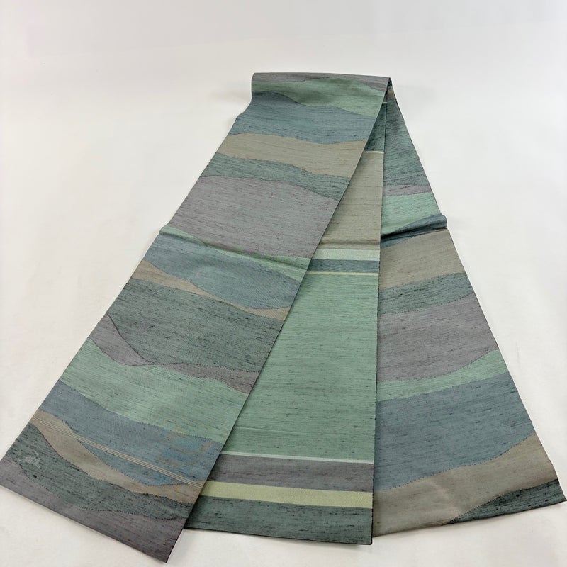 【袋帯】 灰色系 灰緑 名品 A 帯丈426cm~435cm 9990-29990 美品 二万以下