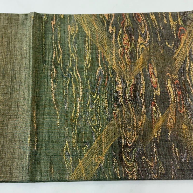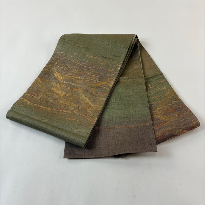 【袋帯】 茶系 茶緑色 名品 A 帯丈436cm以上 9990-29990 美品 二万以下