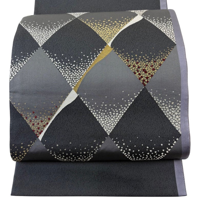 【袋帯】 灰色系 黒灰 名品 A 帯丈436cm以上 9990-29990 美品 二万以下