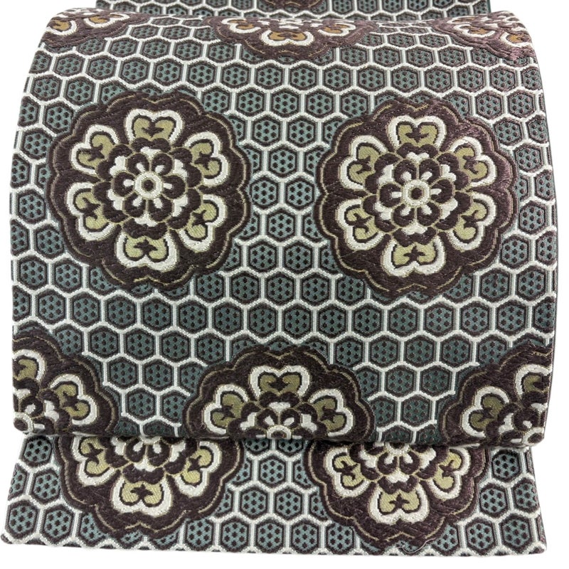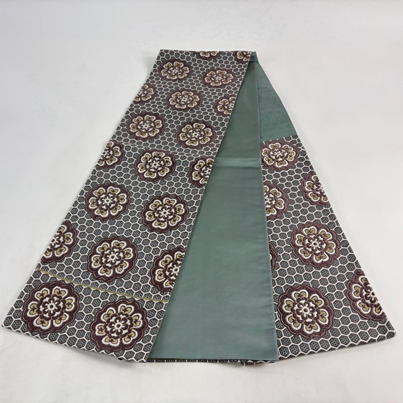 【袋帯】 灰色系 灰緑 名品 A 帯丈436cm以上 9990-29990 美品 二万以下