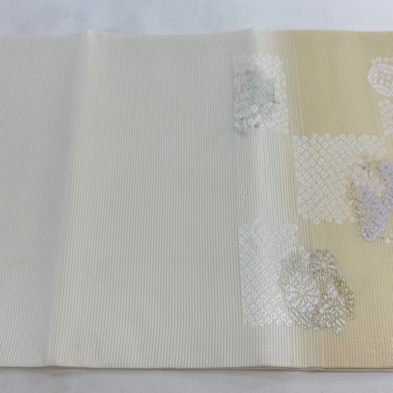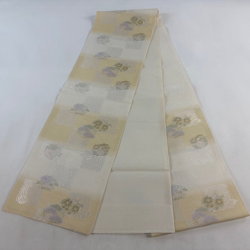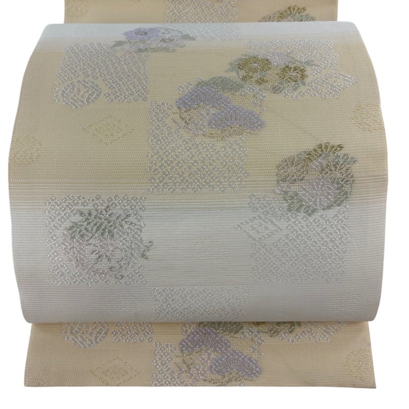 【袋帯】 白系 クリーム 名品 A 帯丈436cm以上 9990-29990 美品 五万以下