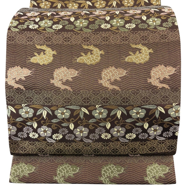 【袋帯】 茶系 茶色 名品 A 帯丈436cm以上 9990-29990 美品 二万以下