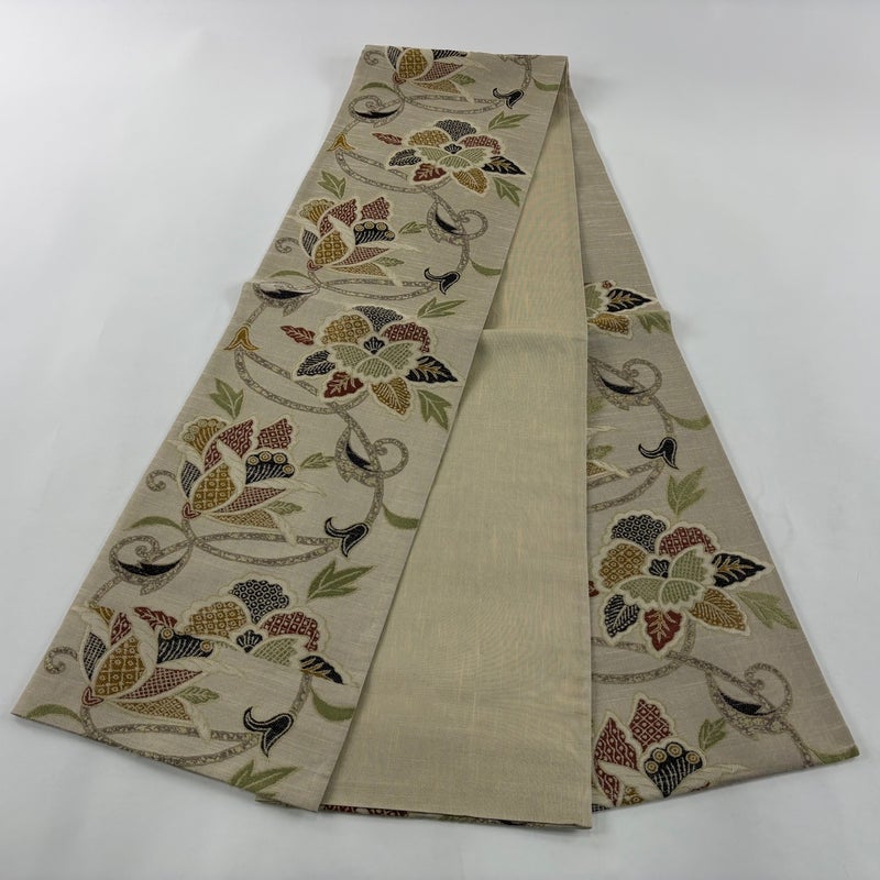セミフォーマルでお使いいただける袋帯でございます。 見る人に重たい印象を感じさせない女性ならではの、気品豊かな一品です。 締め跡がございます。 裏地に薄いシミがございます。 リユース品としては目立った染み傷なく、状態の良いお品でございます。 ※なお、厳しく商品の状態確認を行っておりますが、記載の汚れ以外にも見落とし箇所がある可能性がある旨ご了承いただけますと幸いです。 沢山の商品の中からご覧いただき誠にありがとうございます。 【PR2】