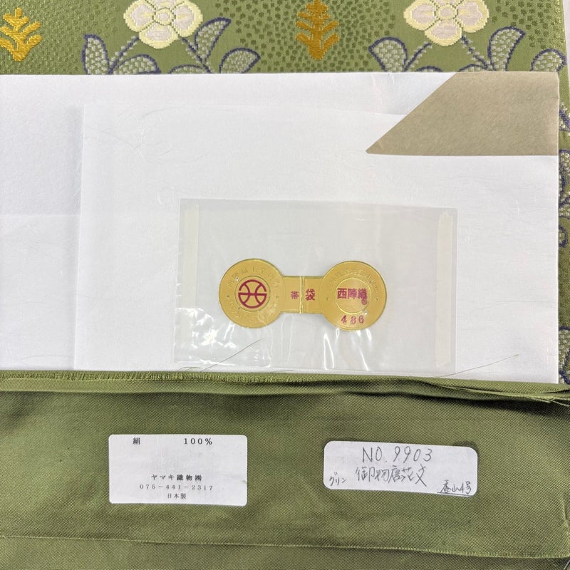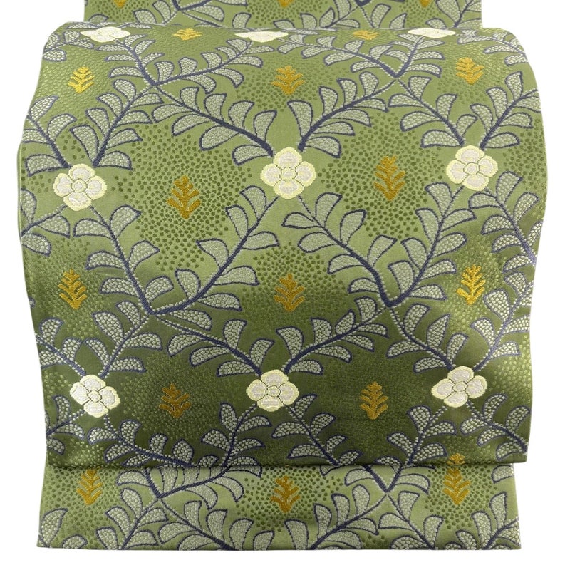 【袋帯】 緑系 よもぎ色 名品 B 帯丈436cm以上 9990-29990 二万以下