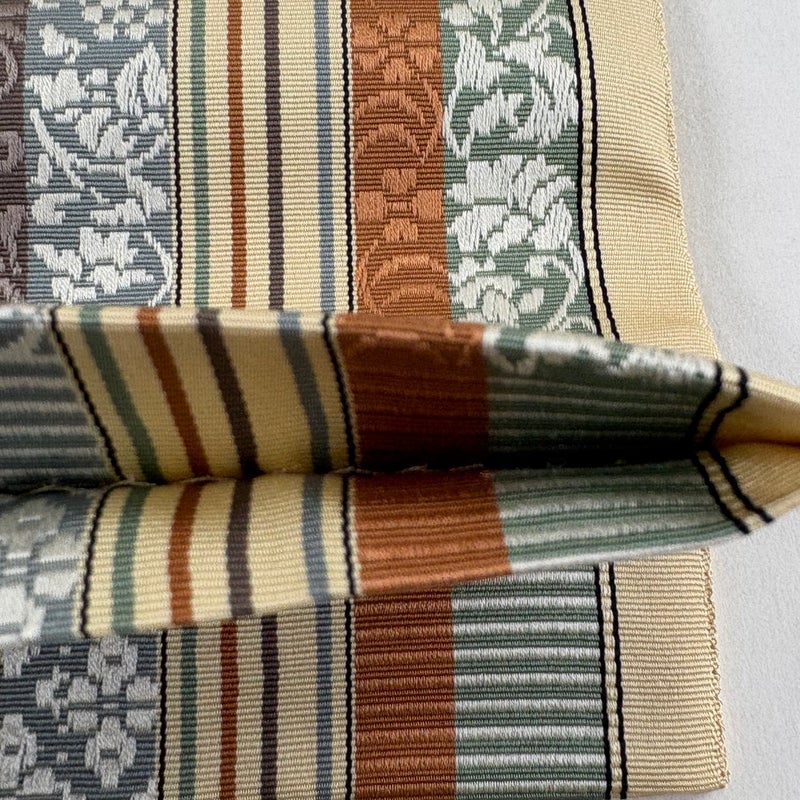 普段使いでお使いいただける袋帯でございます。 カジュアルな装いに合わせてお使いください。 リユース品としては目立った染み傷なく、状態の良いお品でございます。 ※なお、厳しく商品の状態確認を行っておりますが、記載の汚れ以外にも見落とし箇所がある可能性がある旨ご了承いただけますと幸いです。 沢山の商品の中からご覧いただき誠にありがとうございます。 【PR2】