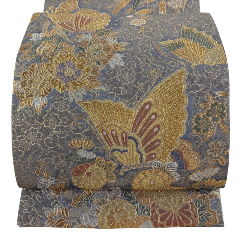 【袋帯】 灰色系 灰色 秀品 A 帯丈426cm~435cm 7990-9980 美品 二万以下