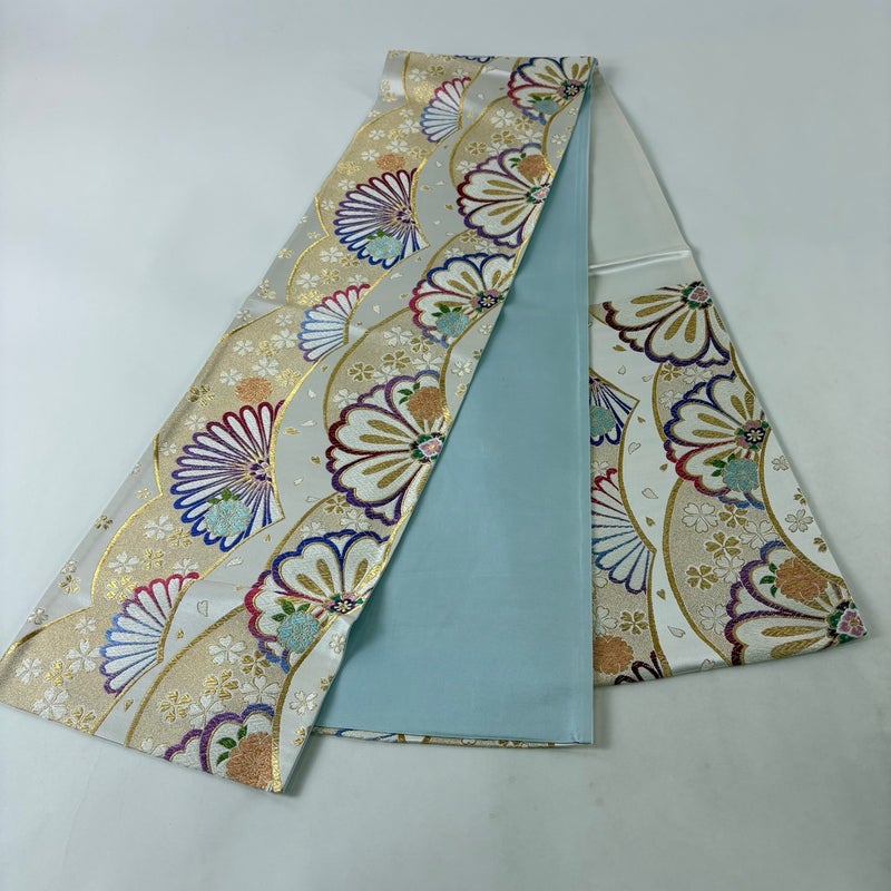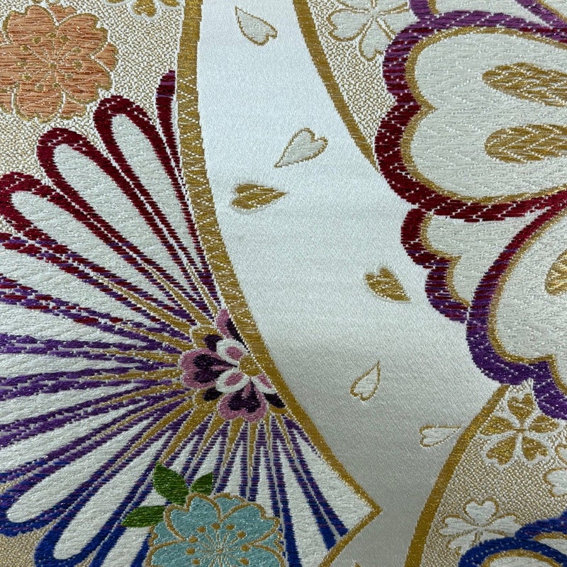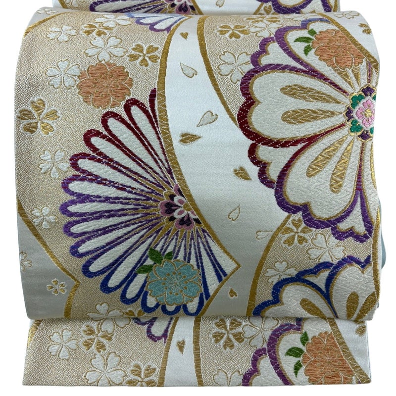 【袋帯】 白系 クリーム 秀品 A 帯丈426cm~435cm 7990-9980 美品 二万以下