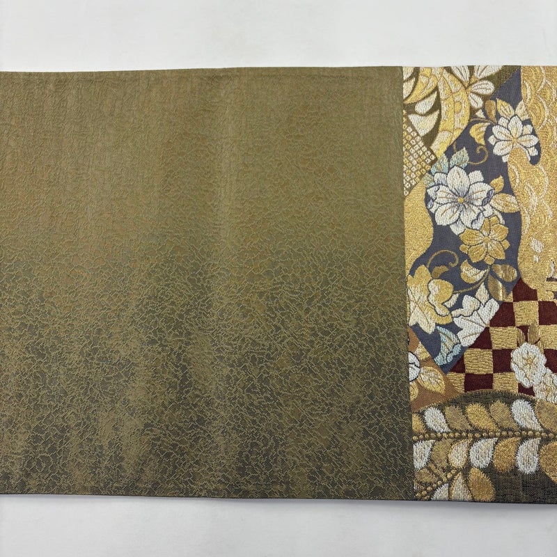 セミフォーマルでお使いいただける袋帯でございます。 見る人に重たい印象を感じさせない女性ならではの、気品豊かな一品です。 リユース品としては目立った染み傷なく、状態の良いお品でございます。 ※なお、厳しく商品の状態確認を行っておりますが、記載の汚れ以外にも見落とし箇所がある可能性がある旨ご了承いただけますと幸いです。 沢山の商品の中からご覧いただき誠にありがとうございます。