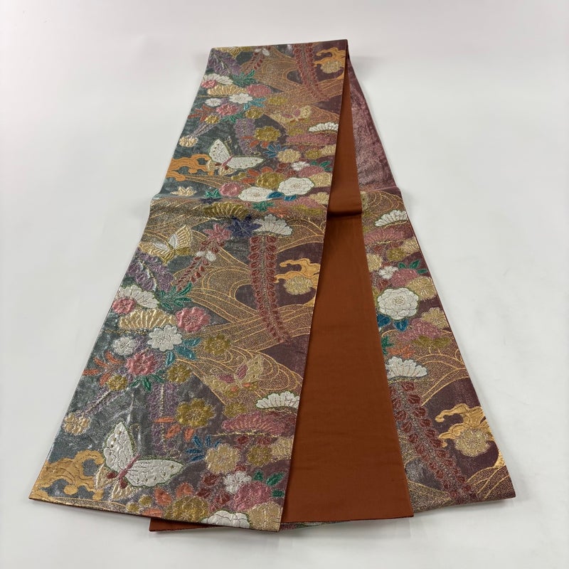 【袋帯】 赤系 ピンクベージュ 秀品 A 帯丈401cm~425cm 7990-9980 美品 二万以下