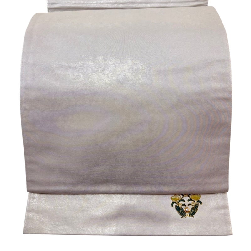 セミフォーマルでお使いいただける袋帯でございます。 見る人に重たい印象を感じさせない女性ならではの、気品豊かな一品です。 締め跡がございます。 お太鼓垂先間に大きなシミ、締め跡沿いに汚れ、前柄お太鼓間にシワがございます。 裏地にシミがございます。 ご購入の際はその点ご留意ください。 ※なお、厳しく商品の状態確認を行っておりますが、記載の汚れ以外にも見落とし箇所がある可能性がある旨ご了承いただけますと幸いです。 沢山の商品の中からご覧いただき誠にありがとうございます。