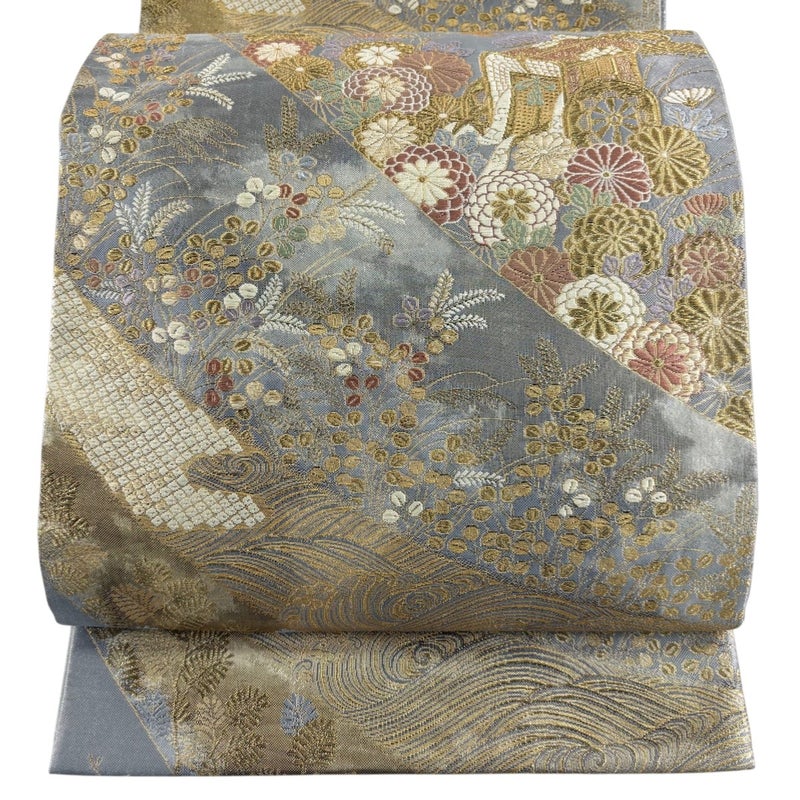 【袋帯】 灰色系 灰色 秀品 A 帯丈426cm~435cm 7990-9980 美品 二万以下