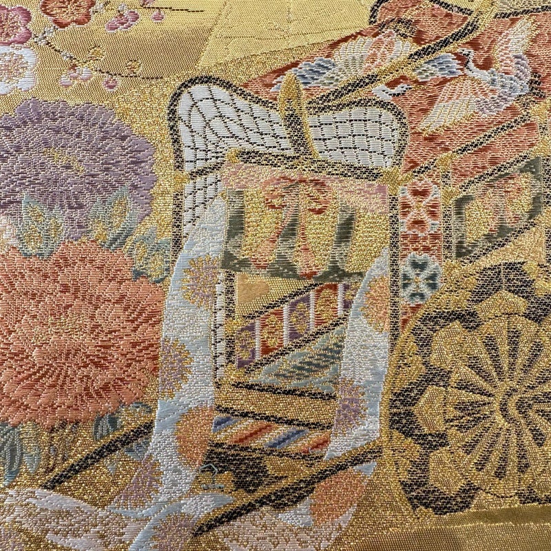 おめでたい席に相応しい意匠の袋帯でございます。 格式高いお席にもお使いいただけますので、お見逃しのないようお願いいたします。 帯芯が入っておりません。 リユース品としては目立った染み傷なく、状態の良いお品でございます。 ※なお、厳しく商品の状態確認を行っておりますが、記載の汚れ以外にも見落とし箇所がある可能性がある旨ご了承いただけますと幸いです。 沢山の商品の中からご覧いただき誠にありがとうございます。