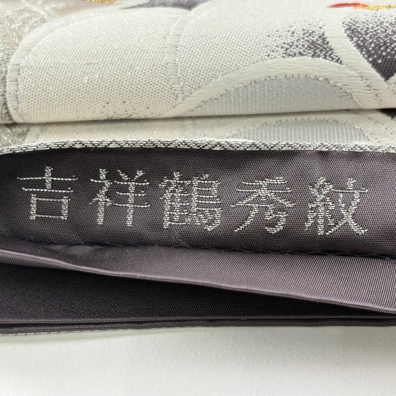 おめでたい席に相応しい意匠の袋帯でございます。 格式高いお席にもお使いいただけますので、お見逃しのないようお願いいたします。 締め跡がございます。 前柄と中無地所々と中無地締め跡沿いに薄汚れ、前柄所々に糸ゆるみがございます。 リユース品としては良い状態で、まだまだご活用頂けると思われます。 ※なお、厳しく商品の状態確認を行っておりますが、記載の汚れ以外にも見落とし箇所がある可能性がある旨ご了承いただけますと幸いです。 沢山の商品の中からご覧いただき誠にありがとうございます。