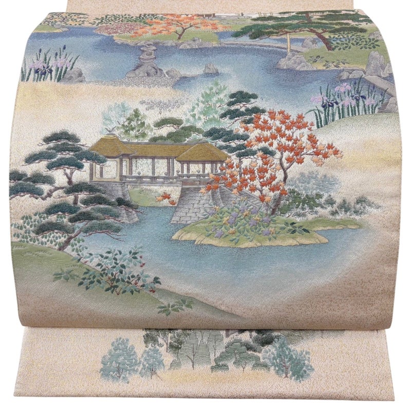 【袋帯】 白系 ベージュ 秀品 A 帯丈436cm以上 7990-9980 美品 二万以下