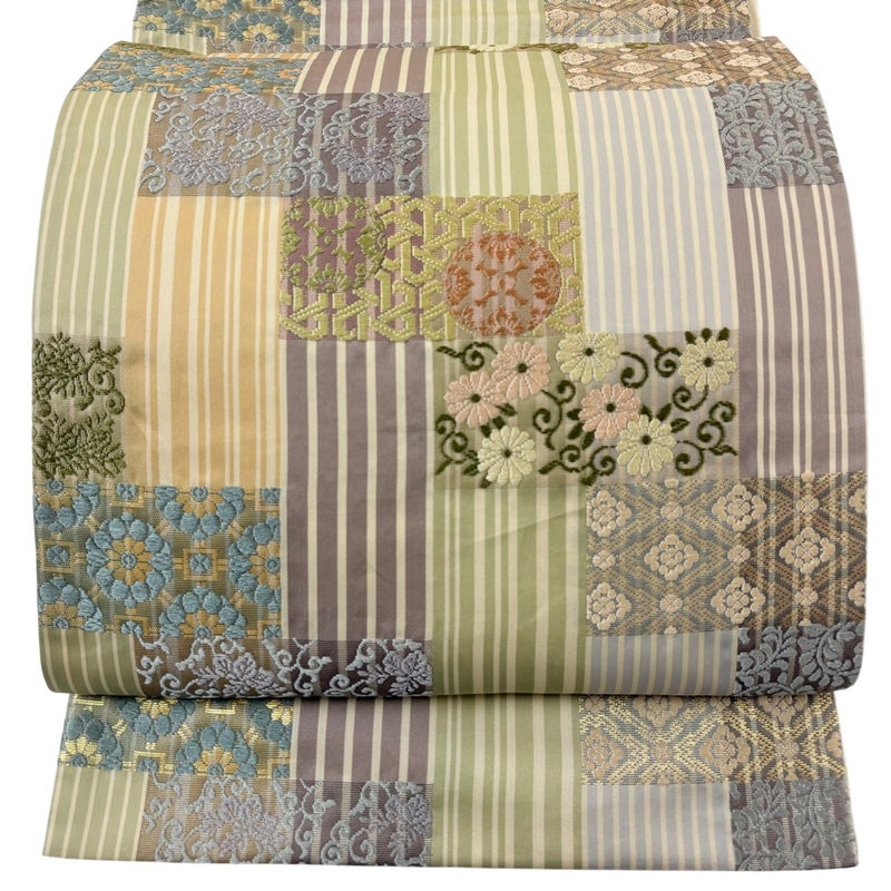 【袋帯】 緑系 薄緑 秀品 A 帯丈436cm以上 7990-9980 美品 二万以下