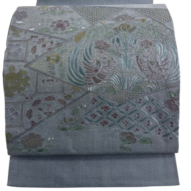 【袋帯】 灰色系 灰緑 秀品 B 帯丈436cm以上 4000-7980 二万以下