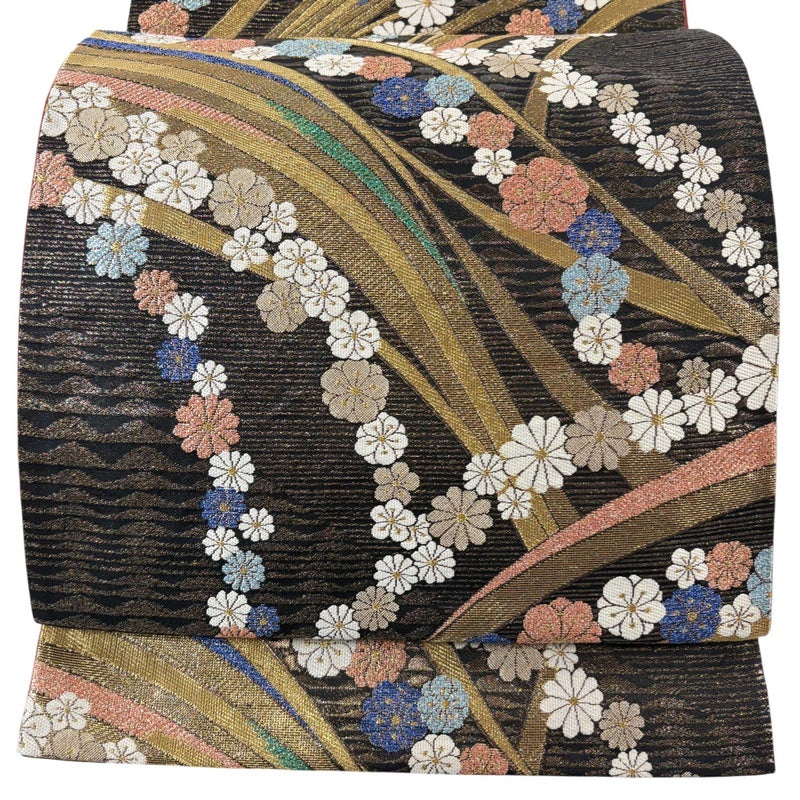 【袋帯】 黒系 黒 秀品 A 帯丈426cm~435cm 7990-9980 美品 二万以下