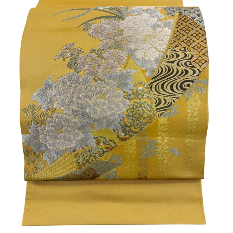 【袋帯】 黄色系 からし色 秀品 A 帯丈436cm以上 7990-9980 美品 二万以下