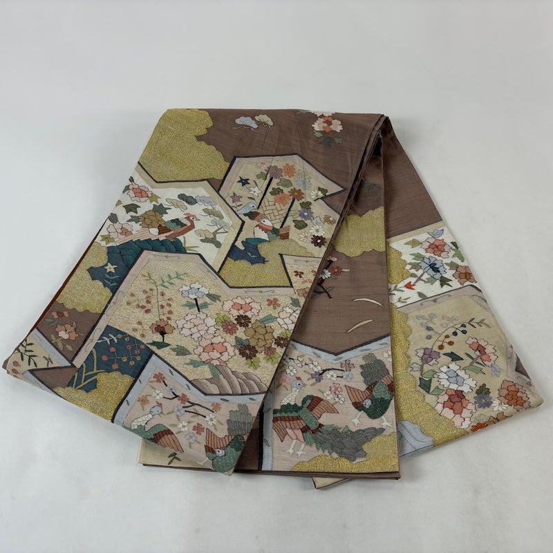 【袋帯】 茶系 茶色 秀品 B 帯丈426cm~435cm 4000-7980 二万以下