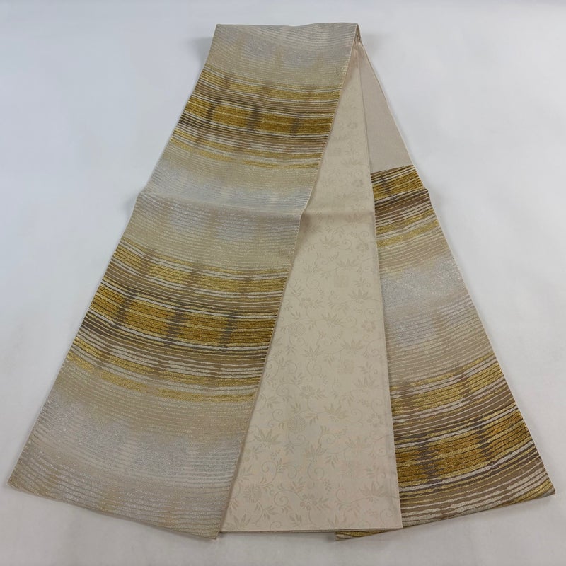 【袋帯】 白系 ベージュ 秀品 A 帯丈436cm以上 7990-9980 美品 二万以下