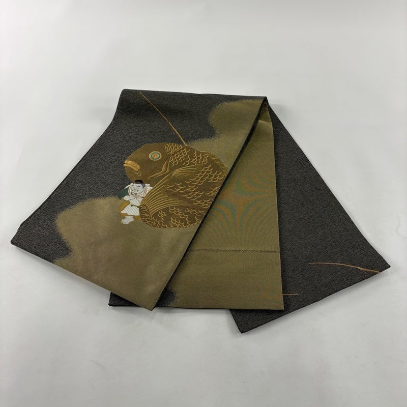 【袋帯】 茶系 茶緑色 秀品 A 帯丈436cm以上 7990-9980 美品 二万以下