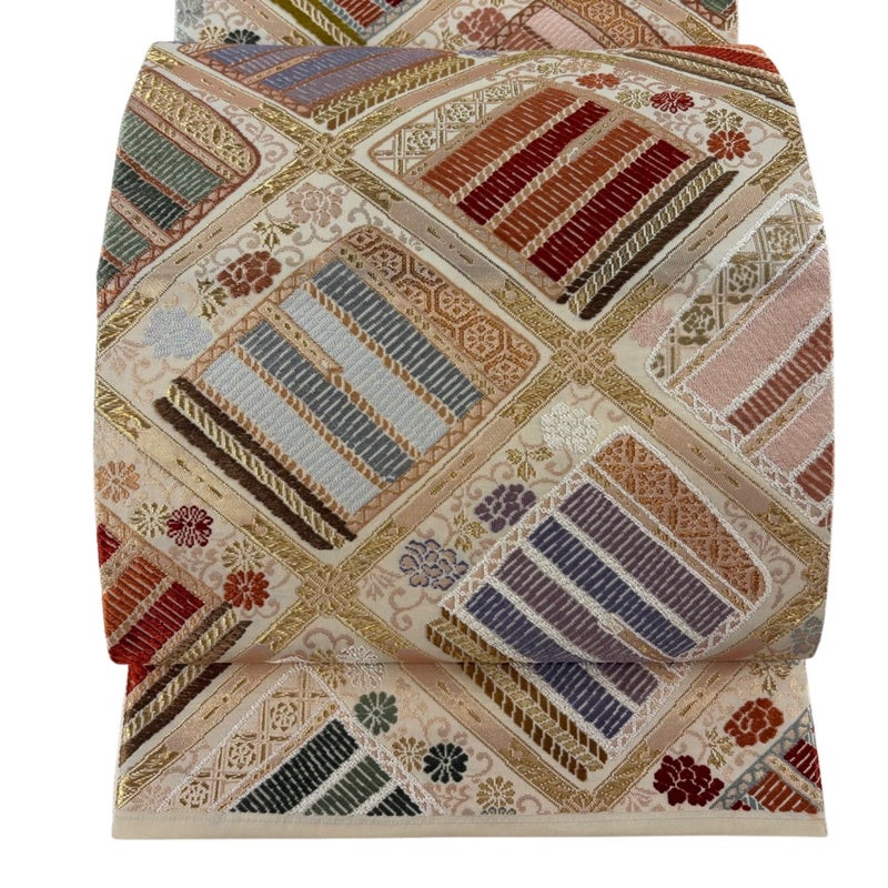 【袋帯】 白系 ベージュ 秀品 A 帯丈436cm以上 7990-9980 美品 二万以下