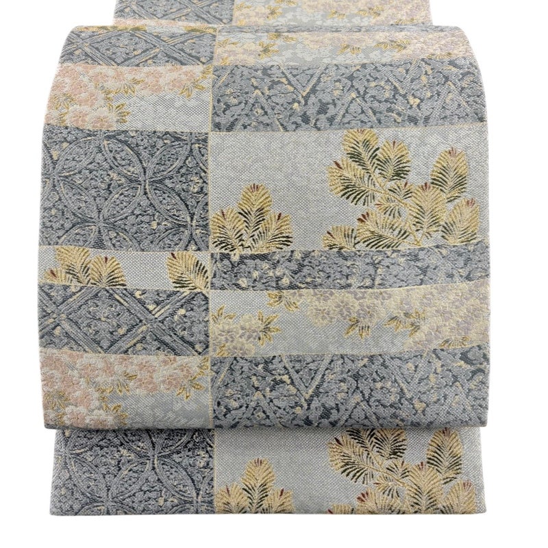 【袋帯】 灰色系 青灰色 秀品 A 帯丈436cm以上 7990-9980 美品 二万以下