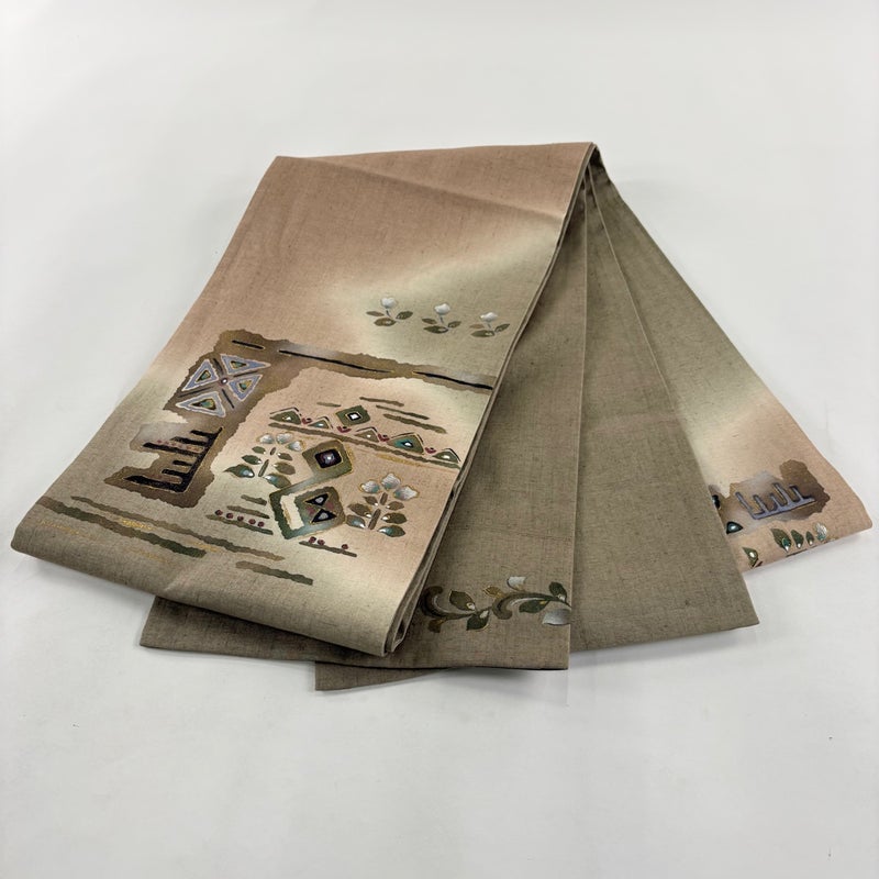 セミフォーマルでお使いいただける袋帯でございます。 見る人に重たい印象を感じさせない女性ならではの、気品豊かな一品です。 締め跡がございます。 リユース品としては目立った染み傷なく、状態の良いお品でございます。 ※なお、厳しく商品の状態確認を行っておりますが、記載の汚れ以外にも見落とし箇所がある可能性がある旨ご了承いただけますと幸いです。 沢山の商品の中からご覧いただき誠にありがとうございます。 【PR2】
