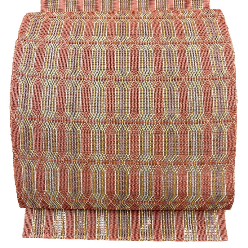 【袋帯】 赤系 ピンクベージュ 秀品 A 帯丈436cm以上 7990-9980 美品 二万以下