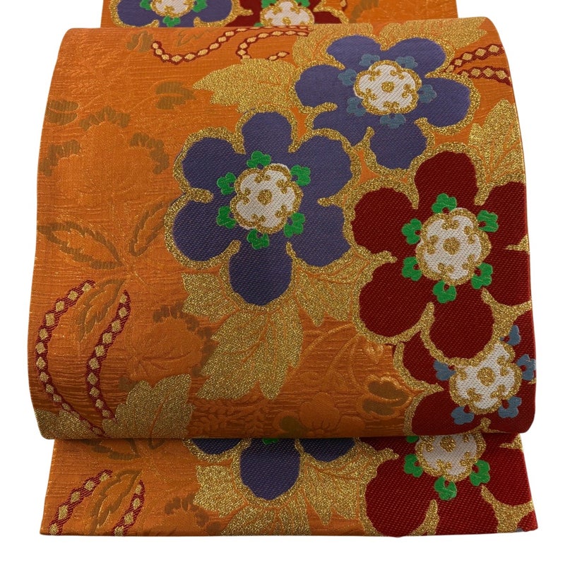 【袋帯】 赤系 オレンジ 秀品 A 帯丈426cm~435cm 7990-9980 美品 二万以下