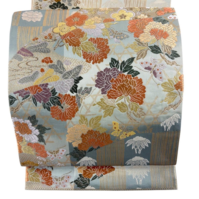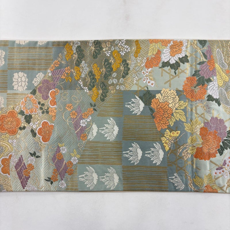 【袋帯】 灰色系 灰緑 秀品 A 帯丈401cm~425cm 7990-9980 美品 二万以下