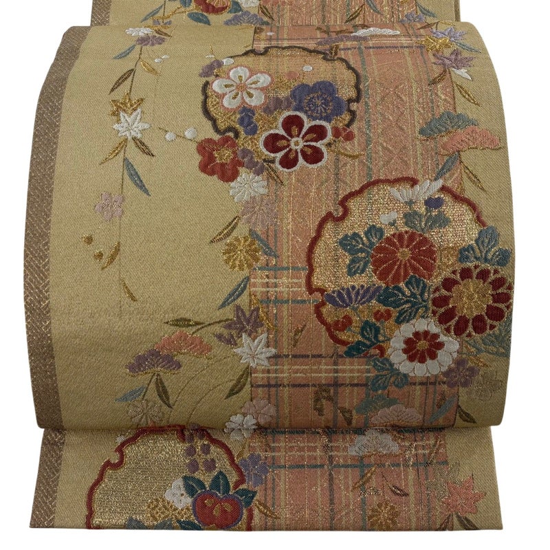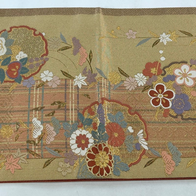【袋帯】 白系 ベージュ 秀品 A 帯丈426cm~435cm 7990-9980 美品 二万以下