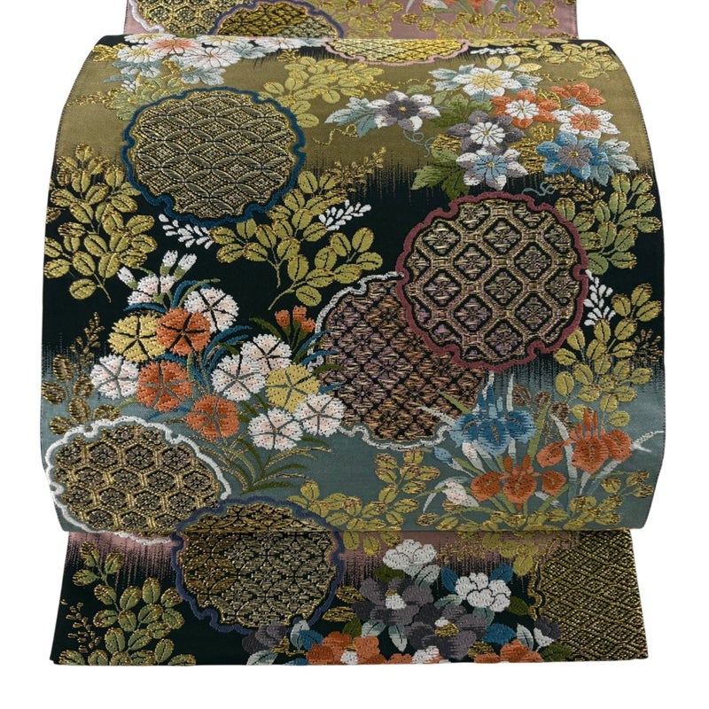 【袋帯】 黒系 黒 秀品 A 帯丈401cm~425cm 7990-9980 美品 二万以下