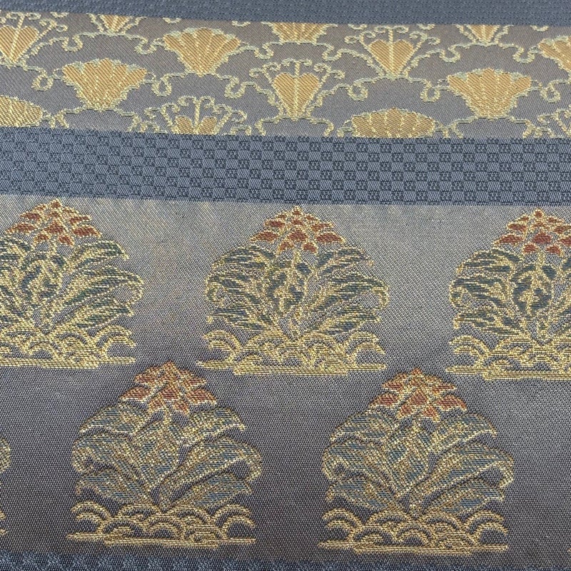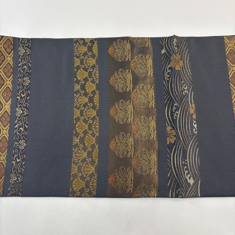 軍配マークと三本線が特徴の「川島織物」謹製の作品です。 セミフォーマルでお使いいただける袋帯でございます。 見る人に重たい印象を感じさせない女性ならではの、気品豊かな一品です。 リユース品としては目立った染み傷なく、状態の良いお品でございます。 ※なお、厳しく商品の状態確認を行っておりますが、記載の汚れ以外にも見落とし箇所がある可能性がある旨ご了承いただけますと幸いです。 沢山の商品の中からご覧いただき誠にありがとうございます。 【PR2】