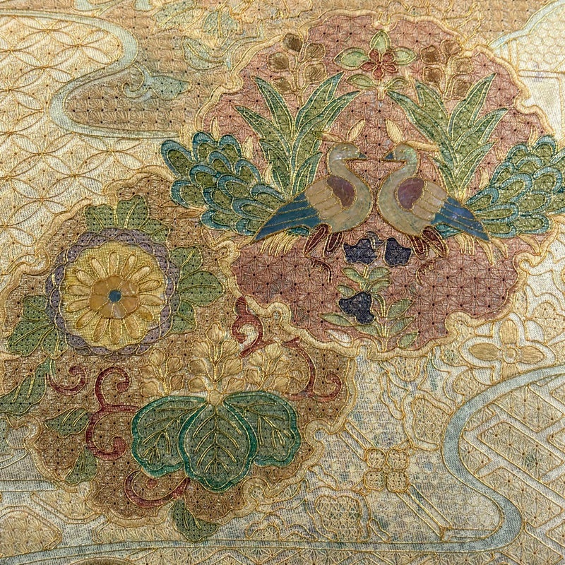 【着物ランク】名品 【素材】正絹 【帯丈】約432cm 【帯幅】約30.5cm 【帯仕立て】仕立て上がり 【状態ランク】ランクA 【帯着用シーン】フォーマル(留袖・振袖・訪問着)